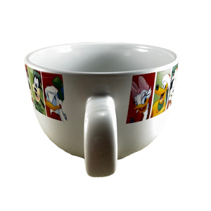 Features artwork wrapping around the upper half of its exterior surface depicting 3 sets of the same Disney characters.