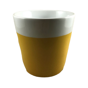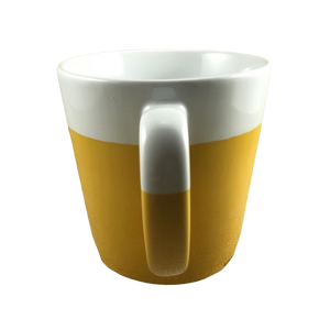 Also features a two tone finsih with the lower 2/3 being yellow and the upper 1/3 white. The handle also follows this color distribution.