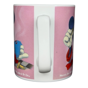 This jumbo Disney mug features a soft pink exterior with charming artwork of Minnie getting ready in her robe, holding a blue cup while applying makeup, paired with the playful phrase “Nobody Ever Said Looking This Good, This Early, Would Be Easy” printed along the lower edge. The wraparound design is set against a smooth pastel pink background that highlights the cozy morning theme, while the oversized shape, clean white handle, and spacious white interior make it perfect for generous servings of coffee or tea. Finished with classic Disney branding on the base, this large-capacity mug blends whimsical character charm with everyday functionality and collectible appeal.