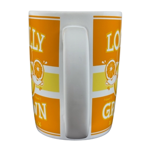 Printed above her is "LOCALLY" and below her is "GROWN."