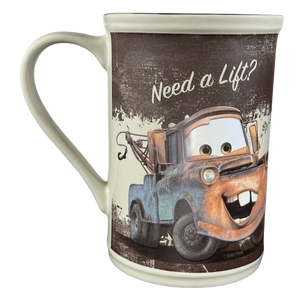 Features artwork depicting Tow Mater smiling on its front surface. Printed above him is