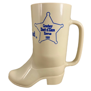 This is a vintage Disneyland Horseshoe plastic boot mug.