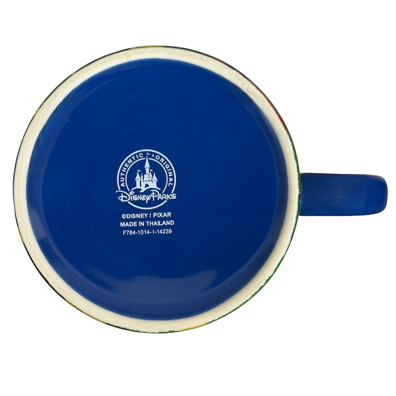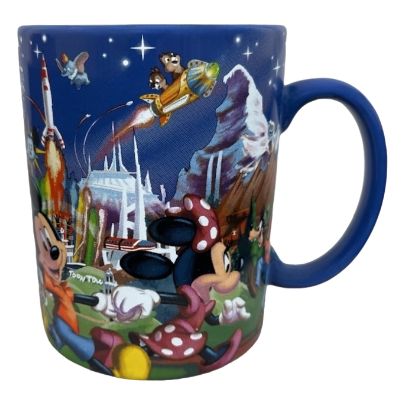 This larger than average mug features vibrant artwork depicting many classic Disney characters and Disneyland attractions wrapping around its exterior surface.