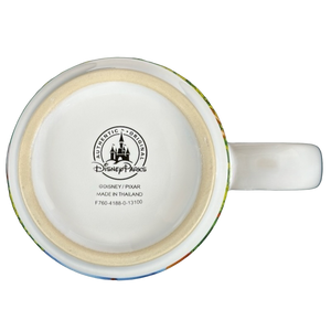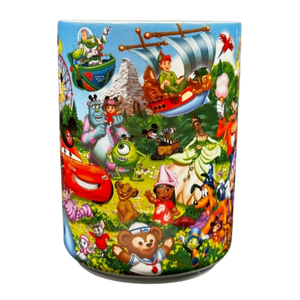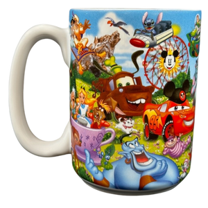 Features colorful artwork wrapping arounds its exterior surface depicting many Disney characters.