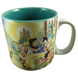 Features beautiful artwork wrapping around this mug consisting of various images from Disney's animated film "Snow White and the Seven Dwarfs"
