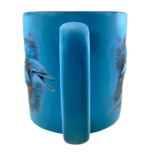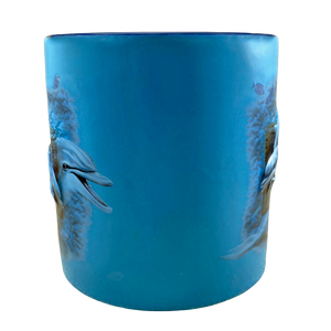 Features the same embossed artwork on its front and rear surface depicting dolphins in the ocean.