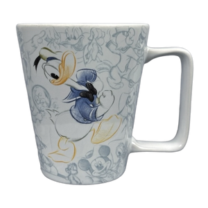 In the background wrapping around the exterior surface are sketched images of Donald Duck and many other Disney characters.