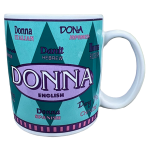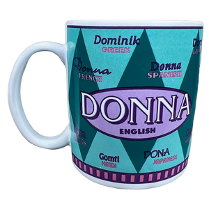 Wrapping around the exterior surface are translations of the name DONNA in many languages.