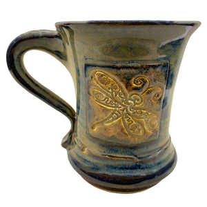 This beautiful mug features an embossed rectangle with an etched dragonfly on its rear surface.