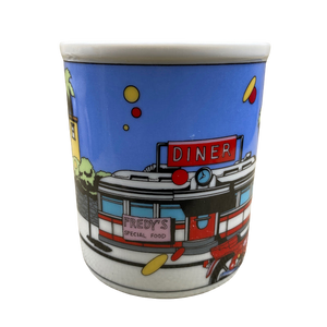 There is a sign on the diner that says: