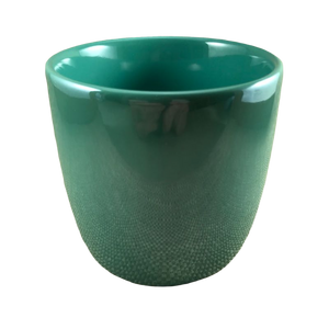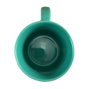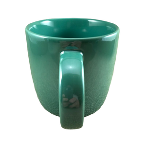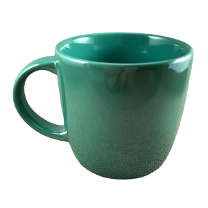 This mug has a beautiful pearlescent green lustre finish on its interior and exterior surfaces.