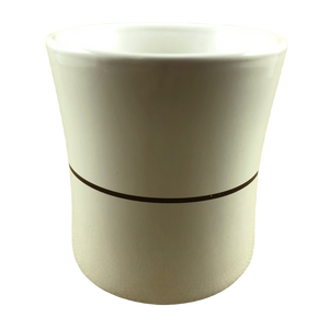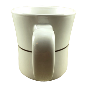 Also has a brown tramline wrapping around the middle of the mugs exterior surface.