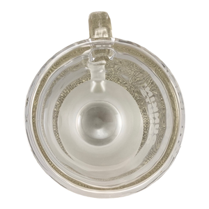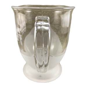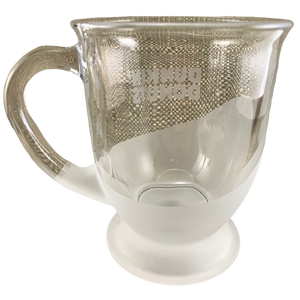 On the bottom surface of the pedestal base there are a few spots where the frosted finish is not uniform. This can be seen in the last photo if you look carefully for it. A few of these spots are visible through the base when the mug is standing upright.