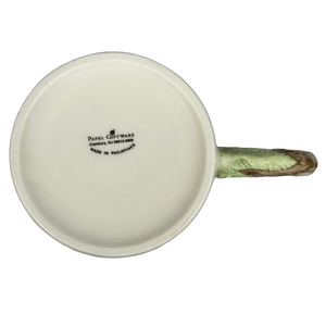 The handle features a sculpted design made to look like tree bark with leaves.