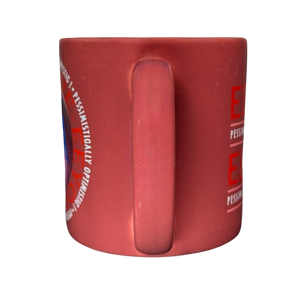 Surrounding this is "PESSIMISTICALLY OPTIMISTIC!" printed four times in an oval pattern.