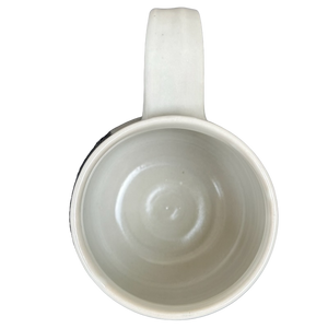 This is a hand thrown pottery mug by ceramic Artist Elaine Y Shore.