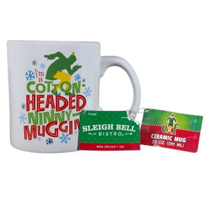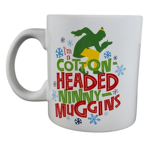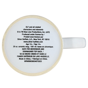 This is a larger than average mug. It features an image of Will Ferrell as elf on its front and rear surface with the following quote beneath: