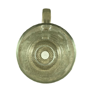 Please note: this is a transparent mug. The tan background behind the mug is showing through the transparent glass.
