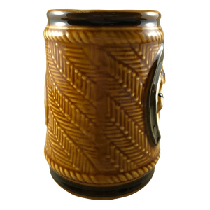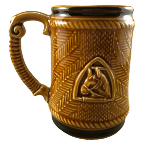 This is a beautiful mug that features an embossed horses' head on its front surface and another smaller one on its rear surface.