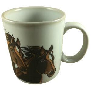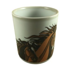 Artwork on the exterior surface depicts three lightly embossed wild horses.