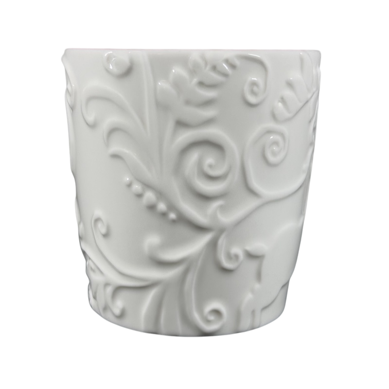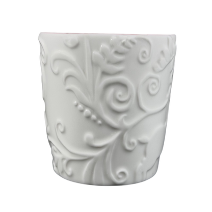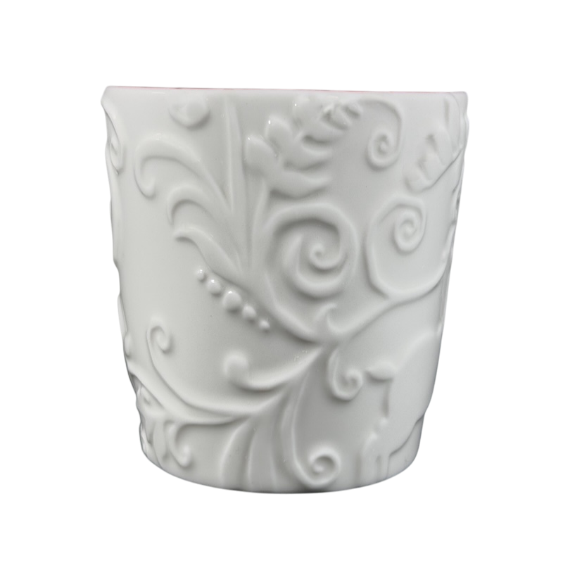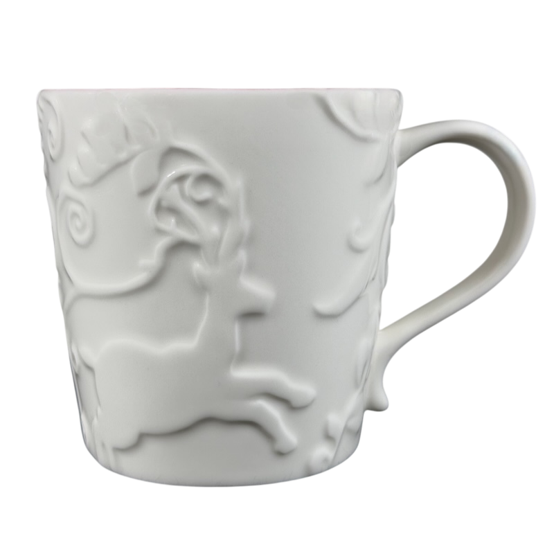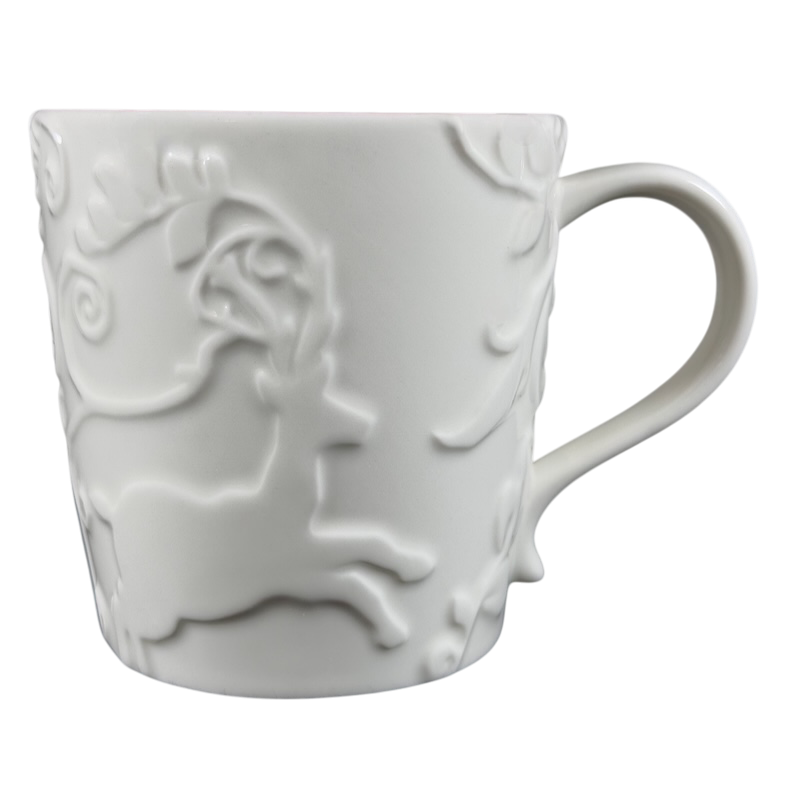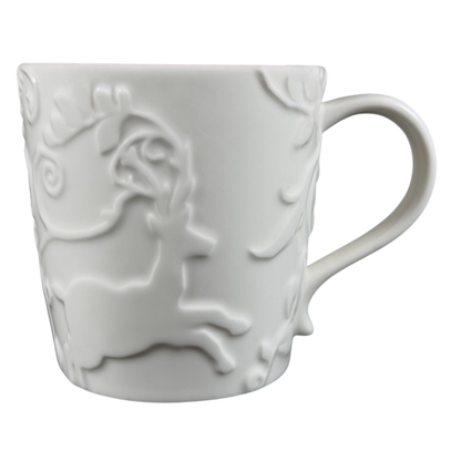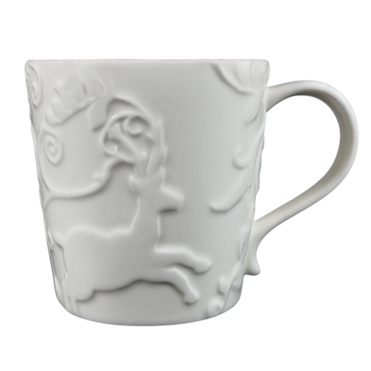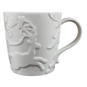 Features embossed reindeer and Holly wrapping around its exterior surface.