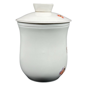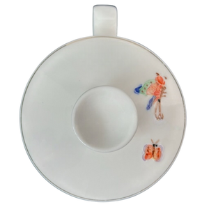 There is matching artwork with lightly embossed accents on the lid and saucer.
