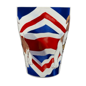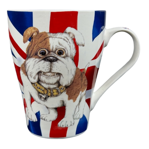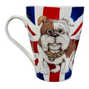 Features the same artwork on its front and rear surface depicting an English Bulldog standing in front of the Union jack flag.
