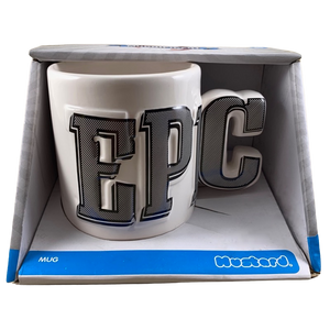 Features "EPIC" on its front surface and handle. "EPI" is embossed on the body of the mug and "C" is actually the handle.