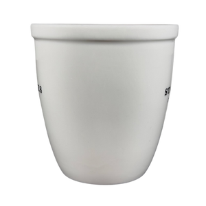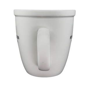 Features black lettering on its white surface.