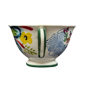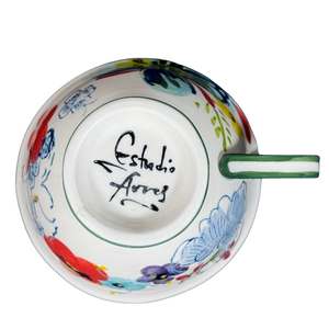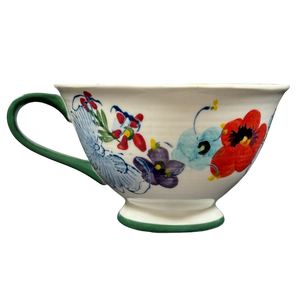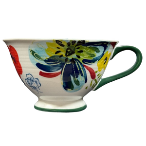 This beautiful mug features a hand-painted floral pattern wrapping around its exterior surface and on its interior.