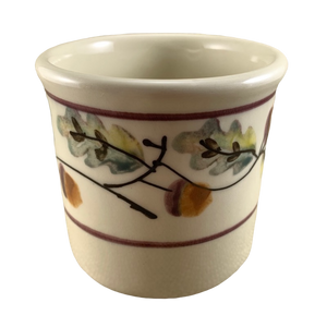 Features leaves, acorns and branches wrapping around its exterior surface.