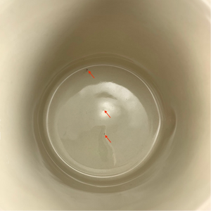 Also has a band of burgundy/brown trim above and below this that wraps around its exterior surface.