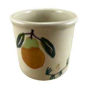 Features leaves, acorns, holly, and a spotted pear wrapping around its exterior surface.