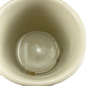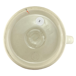 Copy 2: This mug has no chips, cracks, scratches, stains or crazing. There is a dark mark on the bottom rim, please see the red arrow pointing to this in the 6th photo. There are dome defects in the glaze on the interior surface, please see the last photo.