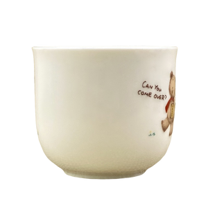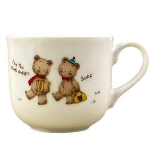 This is a smaller mug/teacup with artwork on its front surface featuring 2 bears.