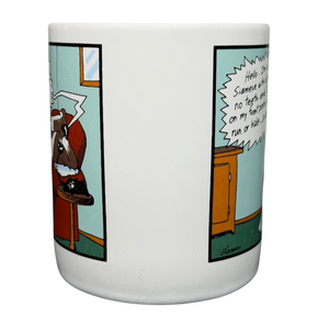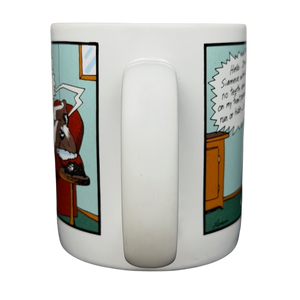 This rare 1984 The Far Side coffee mug by Gary Larson features the classic "Dial-a-Cat" comic, showcasing his signature dark humor with a dog making a mischievous prank call. Crafted from durable white ceramic by OZ in Kansas City, this vintage collectible includes the original wrap-around illustration and authentic 1980s manufacturing marks on the bottom. Its sturdy design and nostalgic appeal make it an essential addition for fans of the iconic comic strip or collectors of high-quality retro kitchenware. Perfect for daily use or display, this piece of comic history brings a touch of surrealist wit to any morning routine.