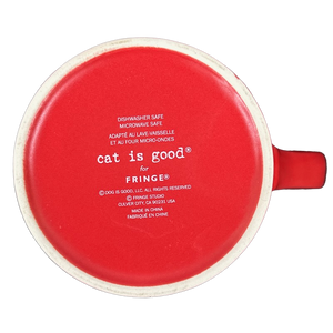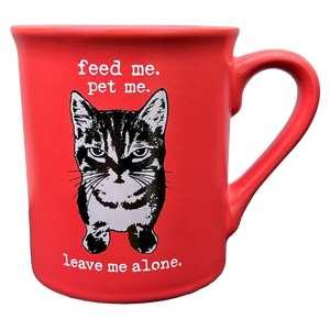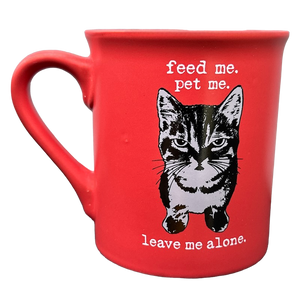 Features the same artwork on its front and rear surface consisting of a cat making an aggravated looking face.