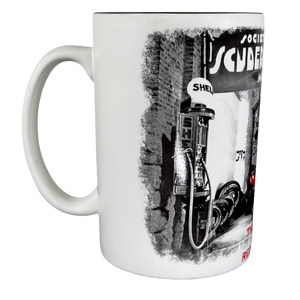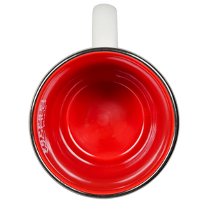 - This mug This mug appears unused with its original sticker still on its bottom surface.