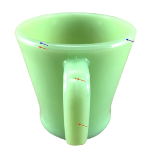 - There are a few imperfections inside this mug, please see the red arrows pointing to these in the 5th and 7th photos.