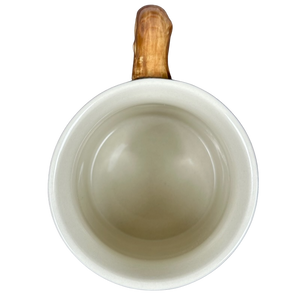 The handle looks like tree bark with knots.