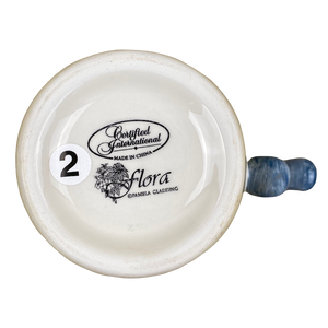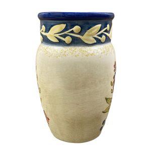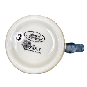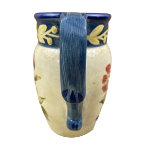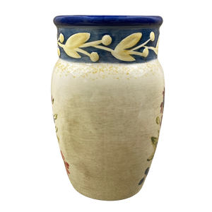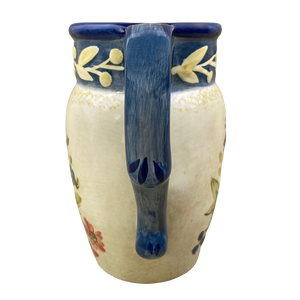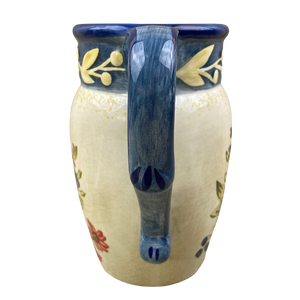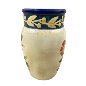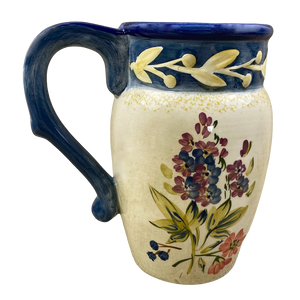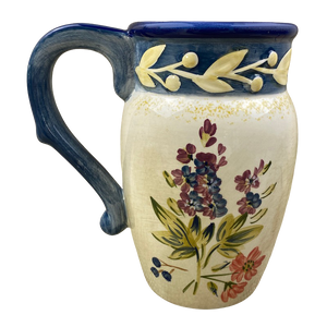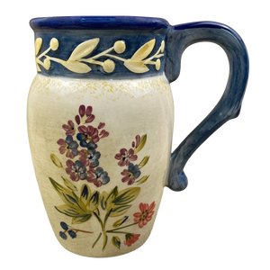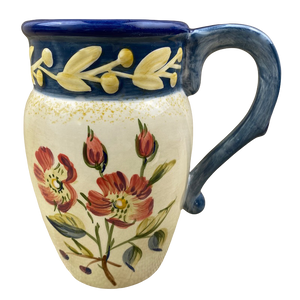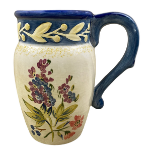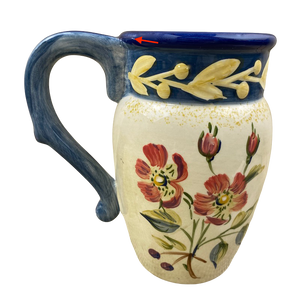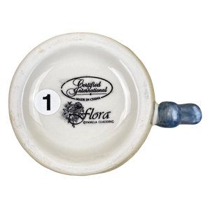 It features gorgeous floral artwork wrapping around its exterior surface and an embossed band of floral trim wrapping around the rim.