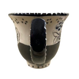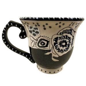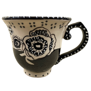 This beautiful mug features the same embossed floral artwork on its front and rear surface.