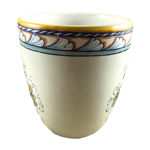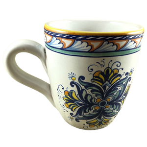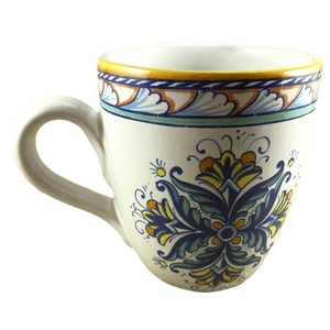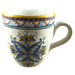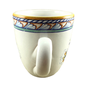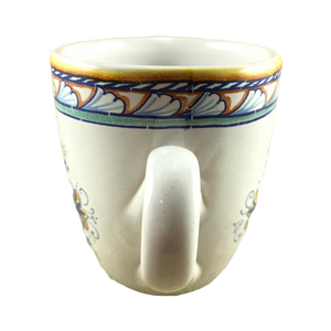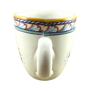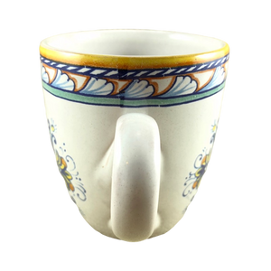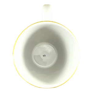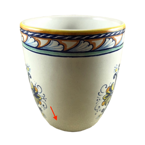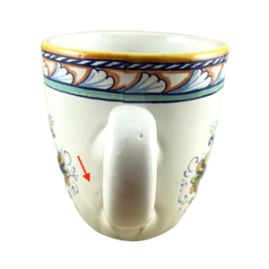 Copy 5: This mug has no chips, cracks, scratches, stains or crazing. On the front surface near the handle there is a small area approximately 1" x 1" in size where the finish underneath the glaze is uneven. There is another smaller spot with the same appearance on the left surface. Thy are hard to describe and not extremely obvious in person but mentioned in the interest of being completely descriptive. I placed a red arrow pointing to the location of each in the 2nd and 4th photos but the imperfections are not visible in these photos.