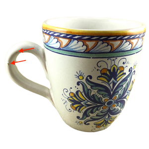 Copy 1: This mug has no chips, cracks, scratches, stains or crazing. There are 2 minor imperfections on the handle. Please see the red arrows pointing to these in the 3rd photo.