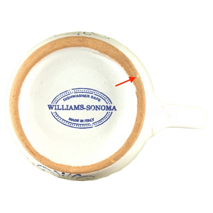 Copy 4: This mug has no chips, cracks, scratches, stains or crazing. There is a very minor white imperfection on the bottom rim. Please see the red arrow pointing to this in the last photo.
