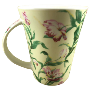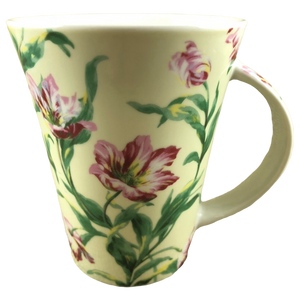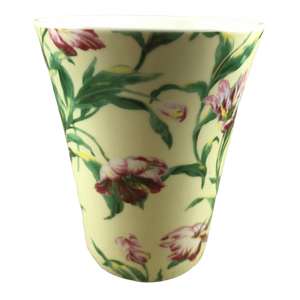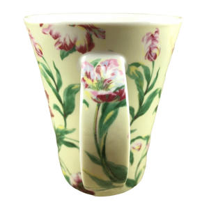 Features beautiful floral artwork wrapping around its exterior and on the handle.