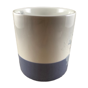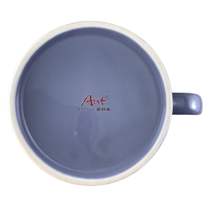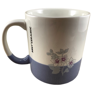 This is a two tone mug where the upper 2/3 is white and the lower 1/3 is violet.
