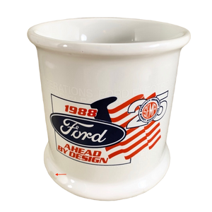 This is an ultra rare Ford collectible mug from 1988 that features the Ford and SEMA logos together on its left exterior surface.