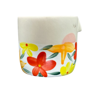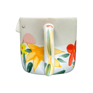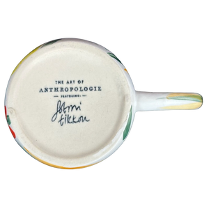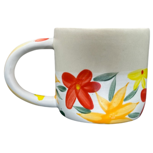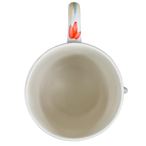 This beautiful mug features colorful floral artwork wrapping around the lower half of its exterior surface.