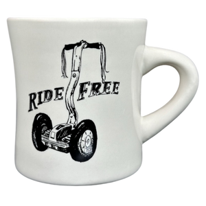 This ultra rare mug features an image of a Segway like vehicle on its front surface.